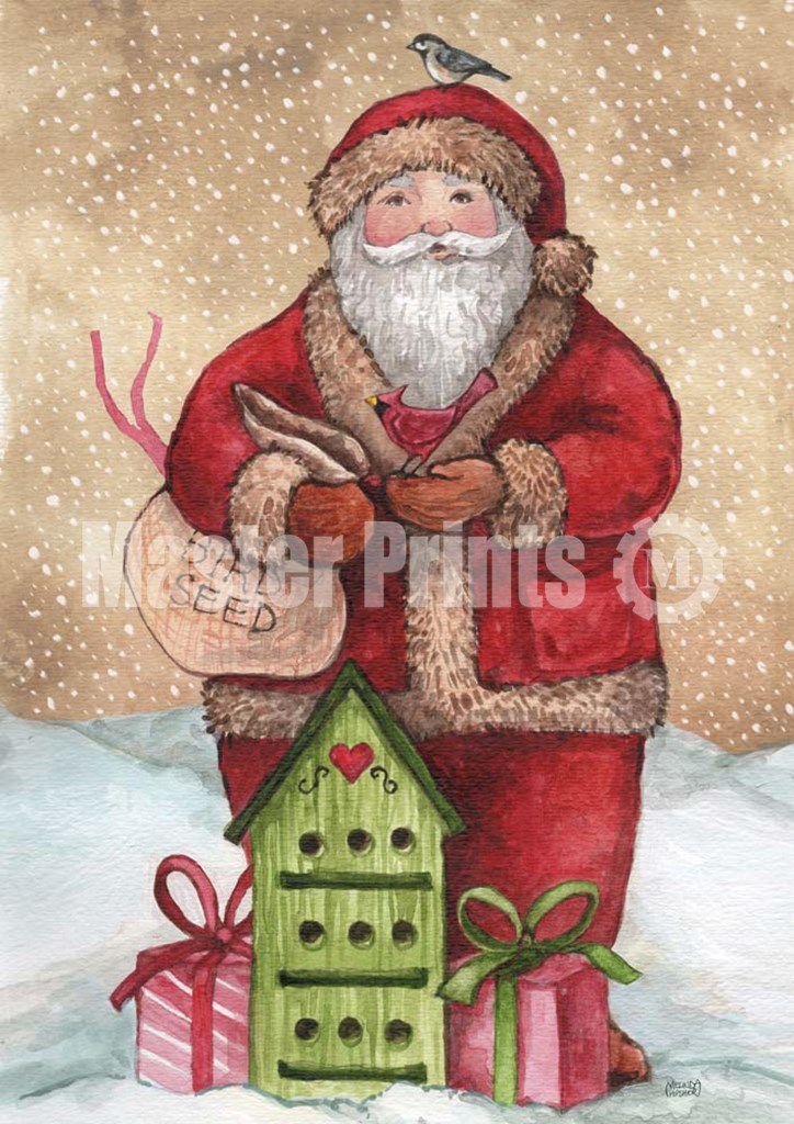 Santa with Birdhouse and Presents by Melinda Hipsher art print