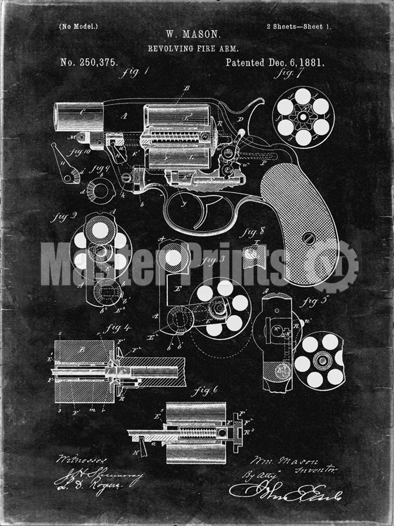 Title: Revolving Fire Arm Patent - Black Grunge