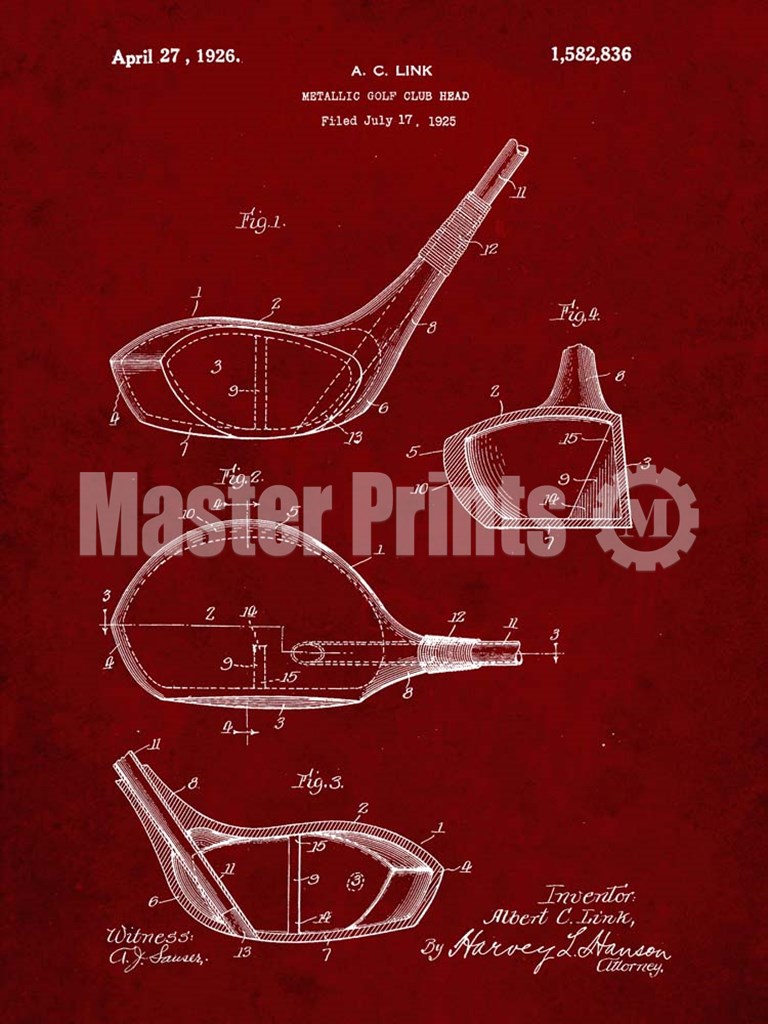 Title: Metallic Golf Club Head Patent - Burgundy