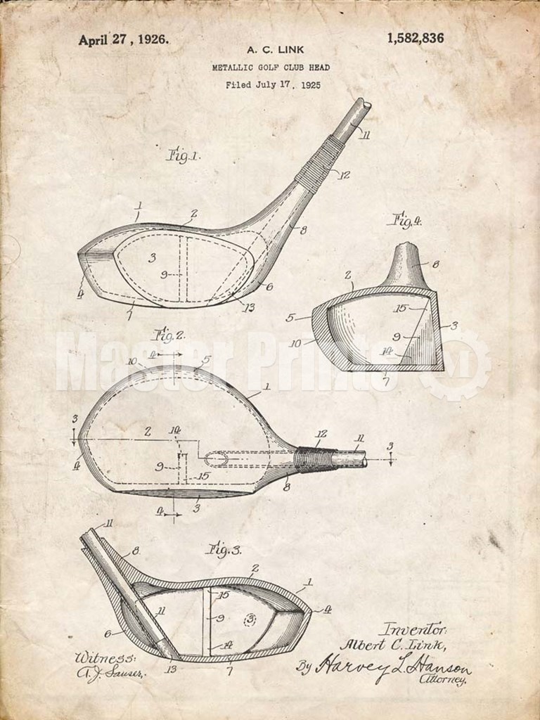 Title: Metallic Golf Club Head Patent - Vintage Parchment