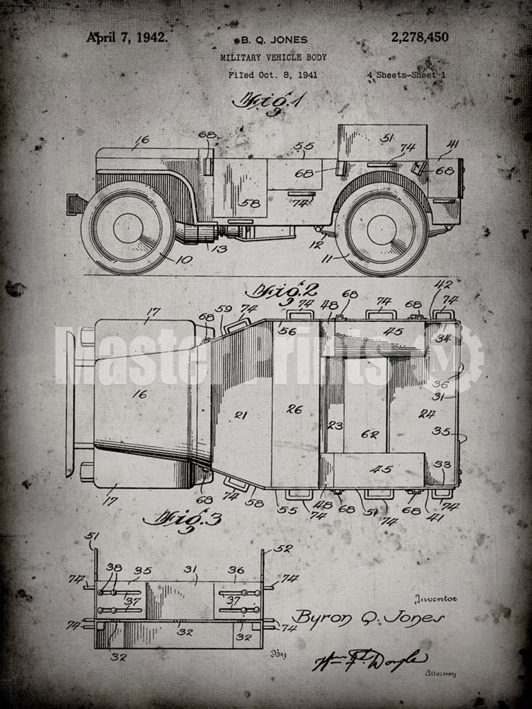 Military Vehicle Body Patent - Faded Grey by Cole Borders art print