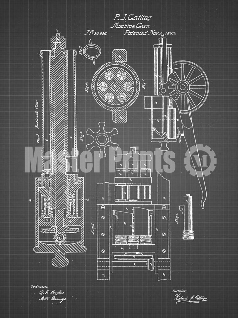 Title: Machine Gun Patent - Black Grid