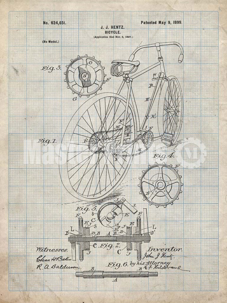 Cole Borders Bicycle Patent - Antique Grid Parchment