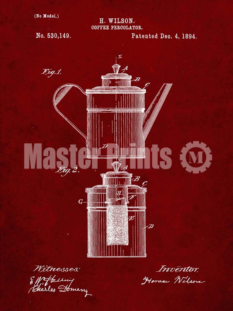 Title: Coffee Percolator Patent - Burgundy