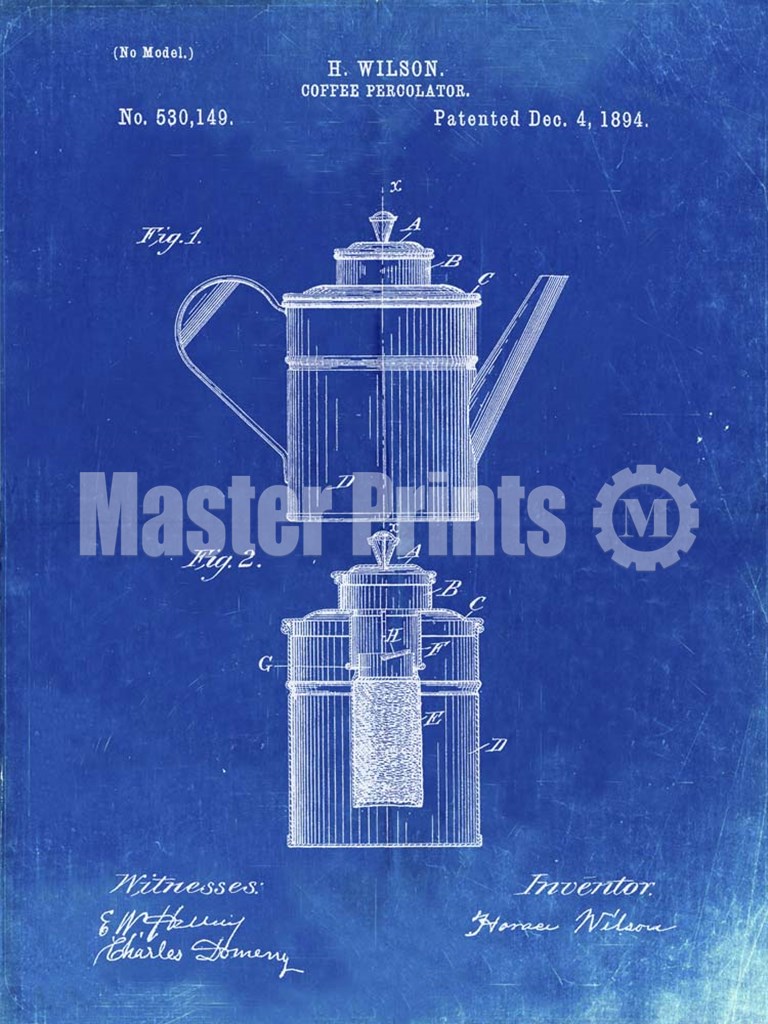 Title: Coffee Percolator Patent - Faded Blueprint