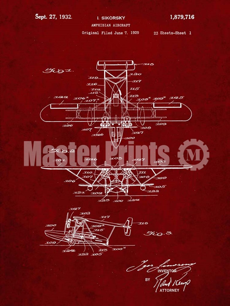 Title: Amphibian Aircraft Patent - Burgundy