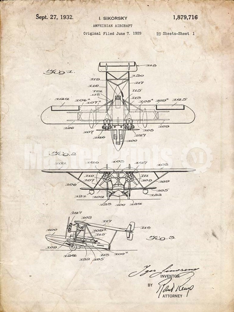 Title: Amphibian Aircraft Patent - Vintage Parchment
