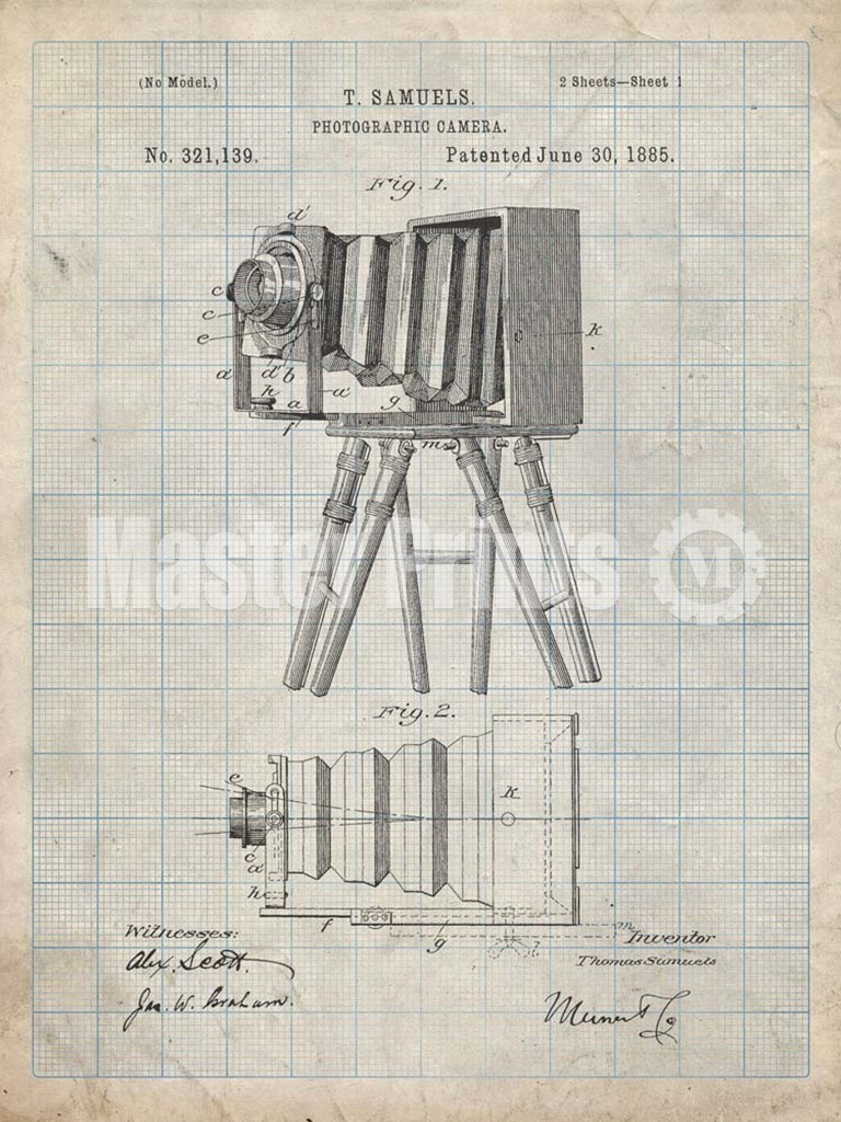 Title: Photographic Camera Patent - Antique Grid Parchment