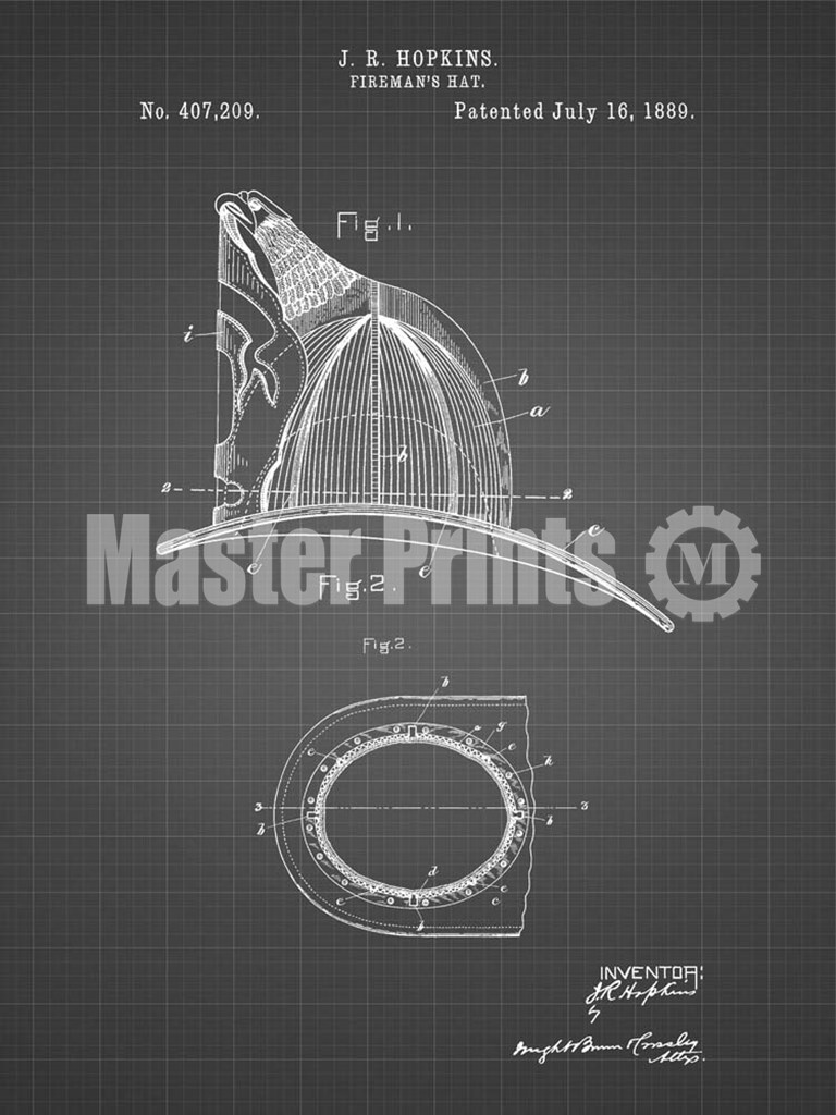 Title: Fireman's Hat Patent - Black Grid