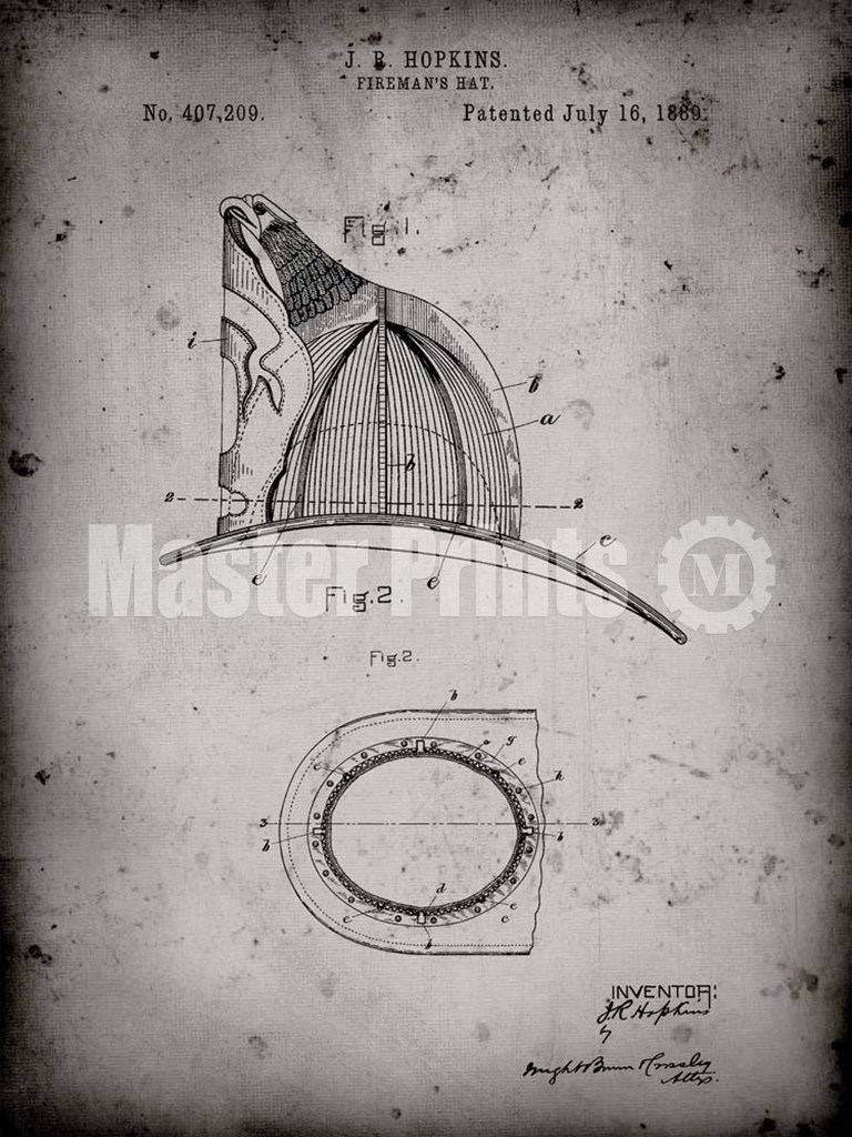 Title: Fireman's Hat Patent - Faded Grey