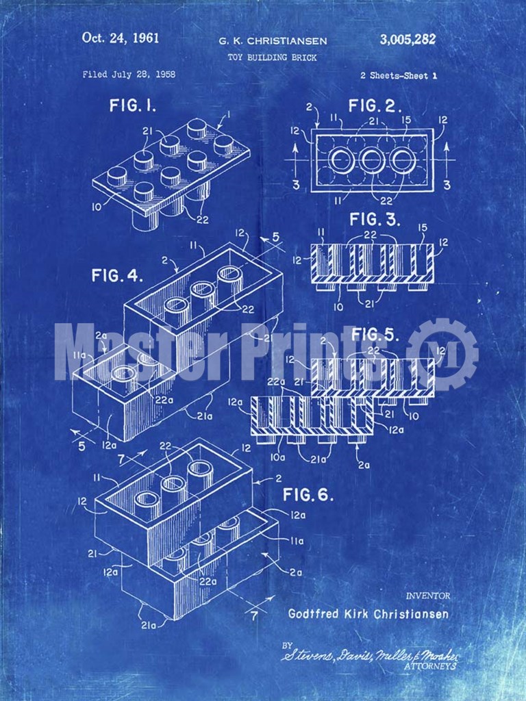 Title: Toy Building Brick Patent - Faded Blueprint