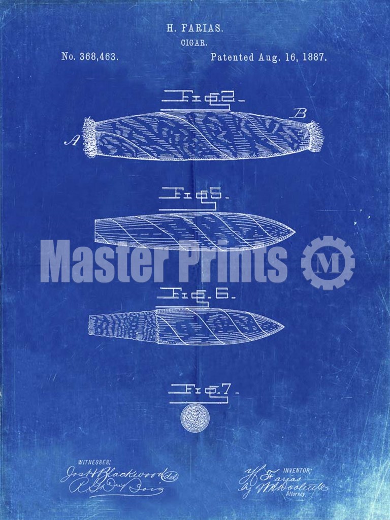 Title: Cigar Patent - Faded Blueprint