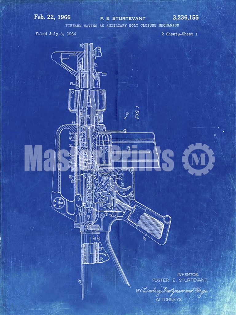 Firearm With Auxiliary Bolt Closure Mechanism Patent - Faded Blueprint by Cole Borders art print