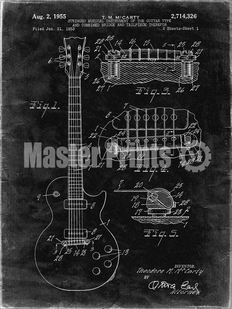 Title: Guitar & Combined Bridge & Tailpiece Therefor Patent - Black Grunge