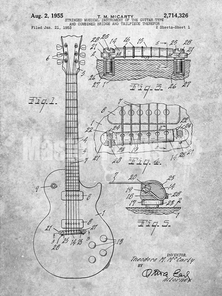 Title: Guitar & Combined Bridge & Tailpiece Therefor Patent - Slate