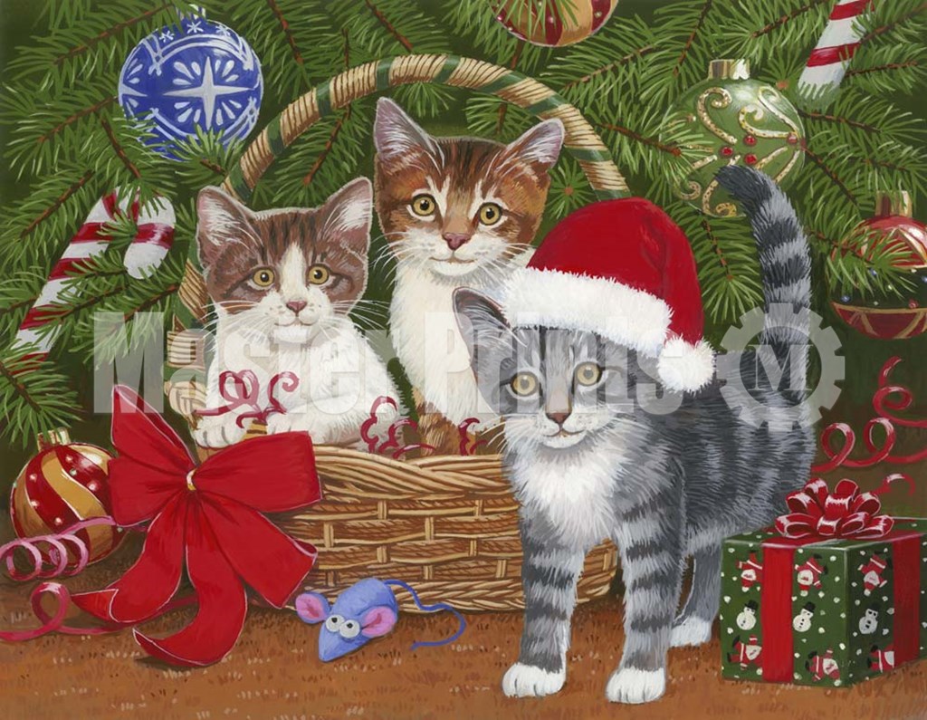 Christmas Kittens in a Basket by William Vanderdasson art print