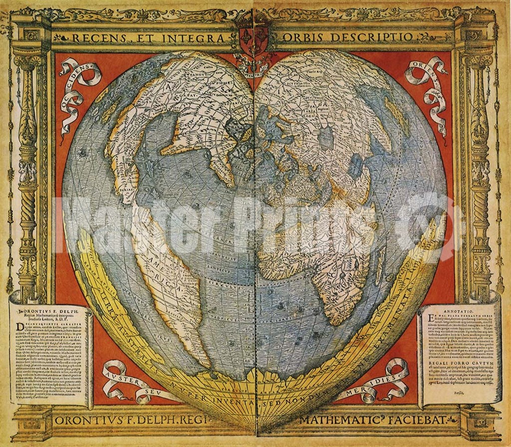 Heart Shaped World Map Stabius-Werner Projection 15 by Vintage Lavoie art print