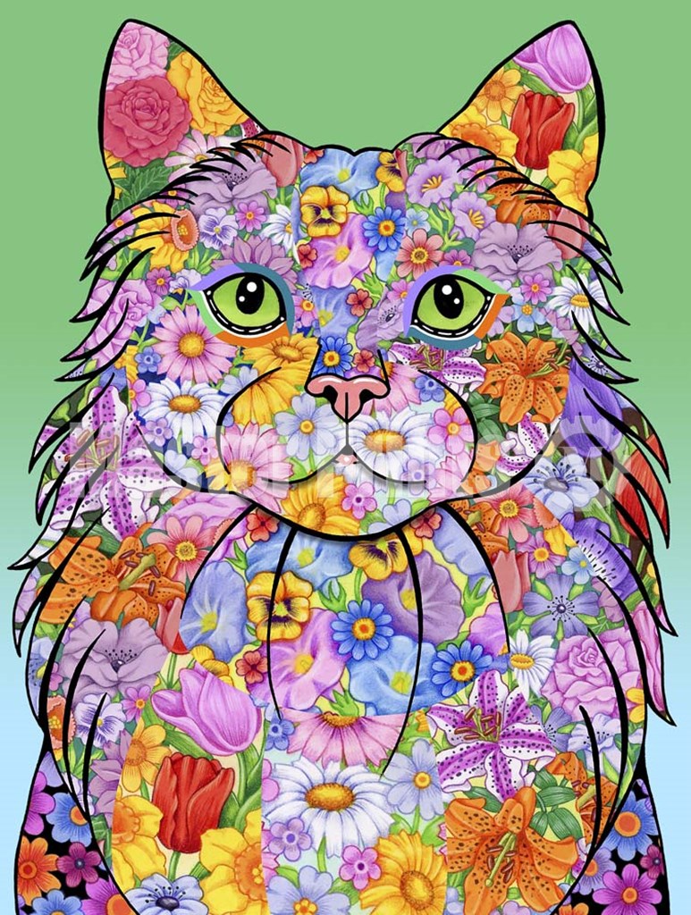 Flowers Maine Coon Cat by Tomoyo Pitcher art print