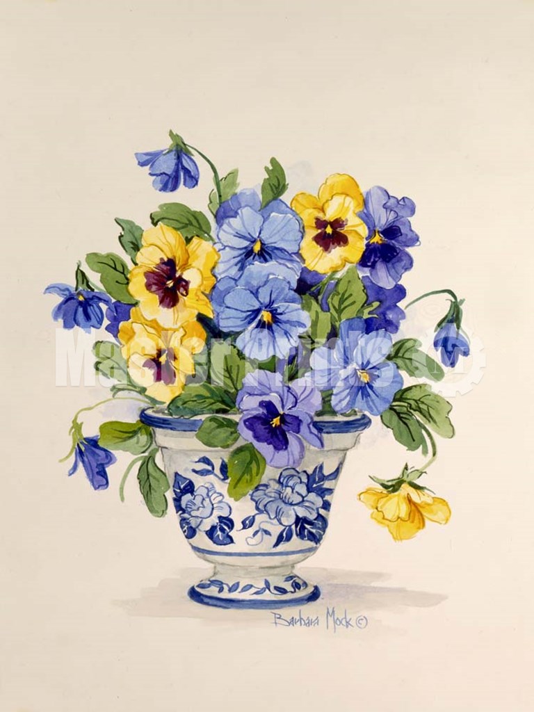 Blue and White Porcelain Pansies by Barbara Mock art print