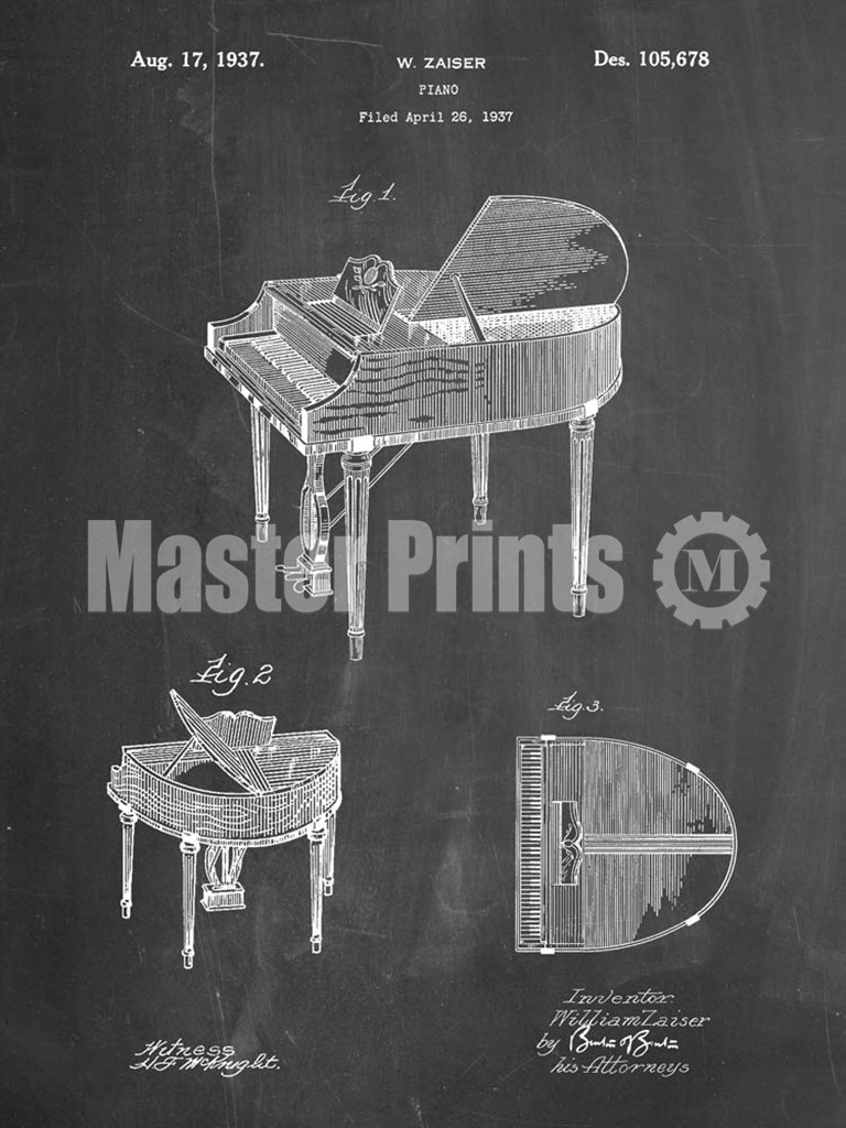 Title: Chalkboard Wurlitzer Butterfly Model 235 Piano Patent