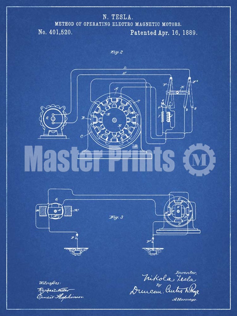 Title: Blueprint Tesla Operating Electric Motors Map Patent