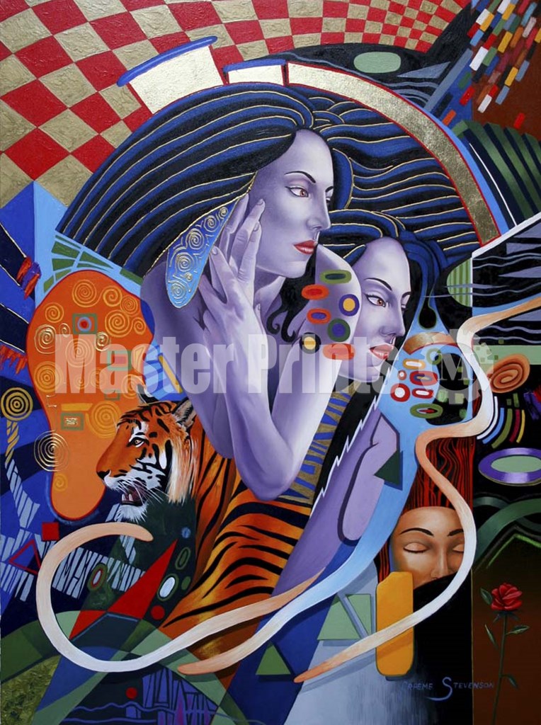 You are viewing a Serigraph print. Fine artists create serigraphs in limited runs by applying layer upon layer of pigment to the print surface by pressing it through a mesh screen containing a stencil. The complex and lengthy process commonly uses inks for pigment and stencils made of a variety of materials. Because of the nature of the process each serigraph is unique.